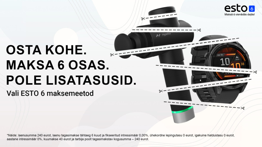 ESTO 6 on populaarseim järgmise põlvkonna makseviis, mis võimaldab teil jagada oma ostu kuueks võrdseks osamakseks 6 kuu jooksul – ilma intressi ja lisatasudeta. Hankige täpselt see, mida vajate kohe, ja makske hiljem – lihtsalt, kiiresti ja turvaliselt.Kuidas see töötab?ESTO 6 abil saate jagada oma ostusumma kuueks võrdseks osaks ja...